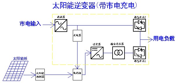 主用于光伏给电池充电,市电为互补充电。